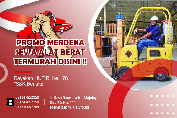 Nah, Bagi Anda yang saat ini sedang mencari jasa rental alat berat di daerah Bandung, kami akan memberikan rekomendasi paling tepat. Dalam rangka merayakan HUT RI ke – 76 Multi Dimensi memberikan berbagai penawaran menarik dengan harga yang sangat terjangkau untuk setiap sewa alat berat. Untuk bisa mendapatkan promo yang satu ini langsung saja hubungi multi dimensi dengan mengunjungi websitenya www.multidimensi.com