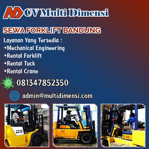 Sewa Forklift Bandung Termurah – CV Multi Dimensi , Apakah saat ini Anda sedang mencari jasa sewa forklift Bandung yang menawarkan harga termurah dan kualitas forklift terbaik? Jika iya maka Anda telah menemukan jawabannya disini. Forklift adalah sebuah alat berat yang biasanya digunakan dalam kebutuhan untuk angkut barang di sebuah pabrik atau gudang. Biasanya dalam menggunakan alat ini dilengkapi dengan garpu ataupun clamps yang dapat memaksimalkan fungsinya sebagai alat angkut barang berat.